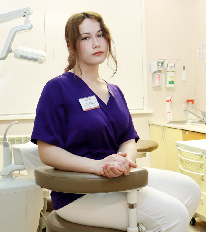 Дружинина Надежда Сергеевна — гигиенист стоматологический, специалист в области профилактики заболеваний полости рта и профессиональной гигиены. В 2025 году окончила Читинский медицинский колледж (г. Чита) по специальности «Стоматология профилактическая», получив квалификацию гигиениста стоматологического. В своей практике выполняет профессиональную гигиену полости рта, включая удаление мягкого и твёрдого зубного налёта, полировку зубов, а также профилактические процедуры, направленные на укрепление эмали и предупреждение стоматологических заболеваний. Работает с современными методиками профессиональной чистки зубов, обеспечивая бережное и эффективное проведение процедур. Особое внимание уделяет индивидуальному подходу и качеству выполняемой гигиены. Принимает взрослых пациентов и подростков, помогает поддерживать здоровье полости рта и предотвращать развитие кариеса и заболеваний дёсен.